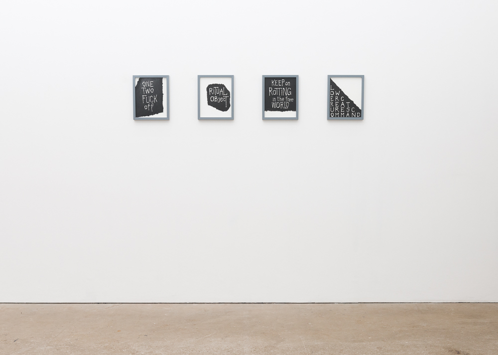 Untitled (The Ramones), 2011; Untitled (Ritual Object), 2010; Untitled (Keep on Rotting), 2010; Untitled (Lower Creatures), 2010. Ink, pencil and water color on paper, 30 x 24 cm (each), 2014